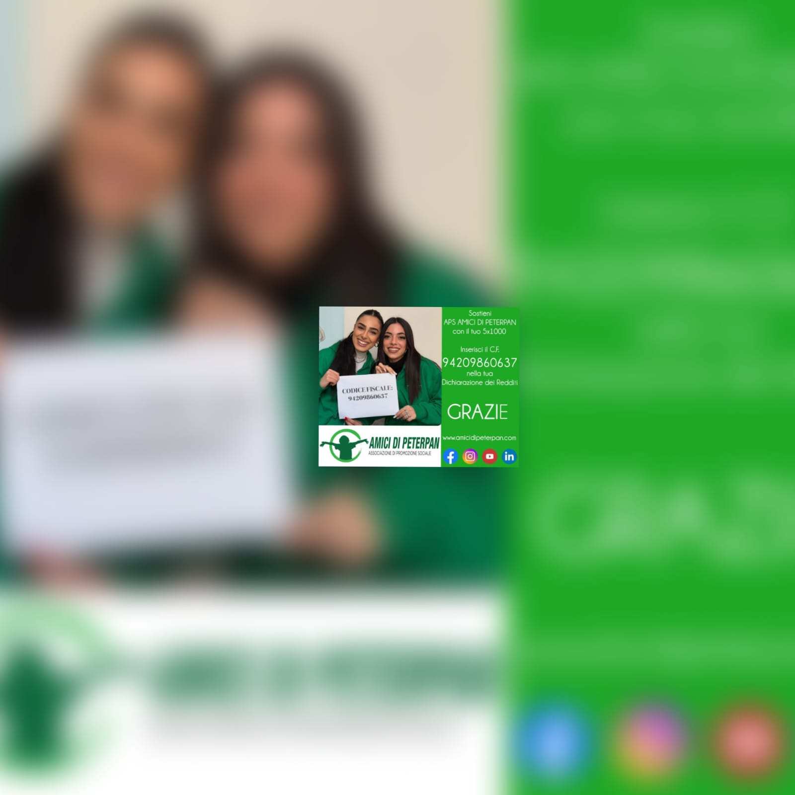 Se vuoi donare il tuo 5×1000 ad APS AMICI DI PETERPAN è importante indicare il codice fiscale 94209860637. Se firmi senza inserire il codice fiscale di APS AMICI DI PETERPAN, la tua quota sarà ripartita in maniera proporzionale in base al numero di preferenze ricevute dalle associazioni appartenenti alla stessa categoria.
