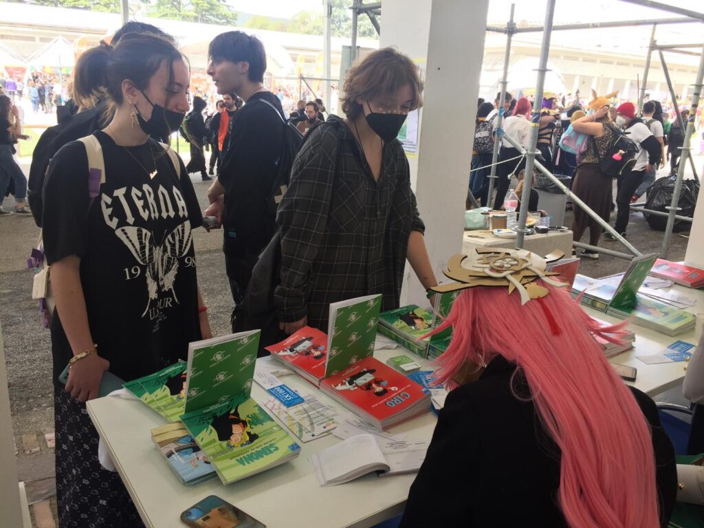 Ad animare lo stand ci sono stati le cosplayer e disegnatrici Elvira Labarbera e Francesca Giulia Panarese, lo sceneggiatore dell’ultimo fumetto “Simona – L’amore non fa differenze”, Francesco Busiello, e Alex Zolcinska che ha collaborato con noi disegnando la terza di copertina.